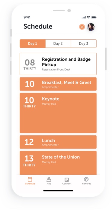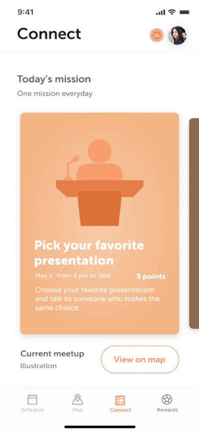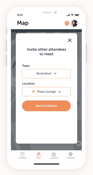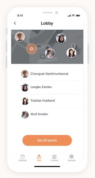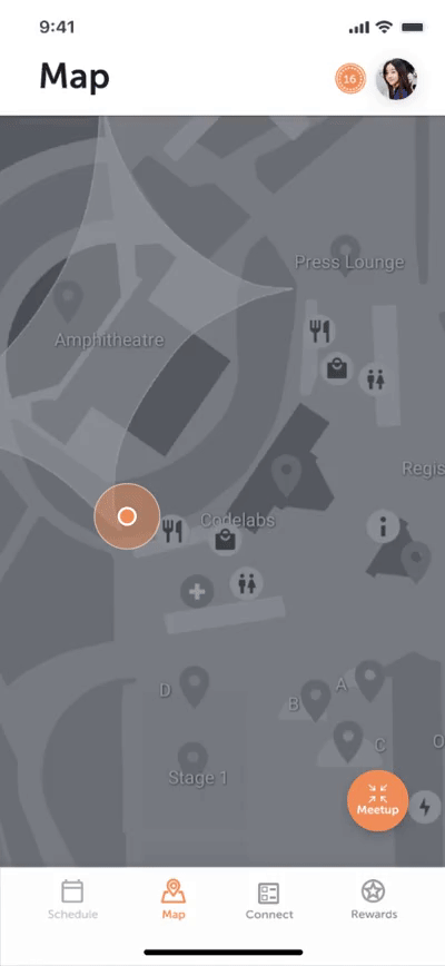 It shows where you are at the conference and the places you can visit. Also, you can invite people to join you in a meetup.