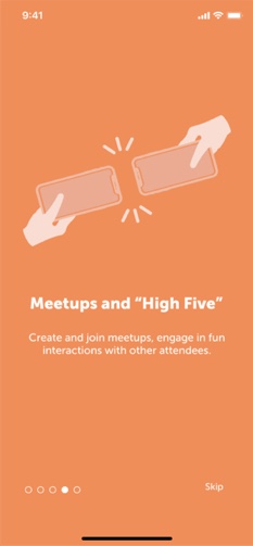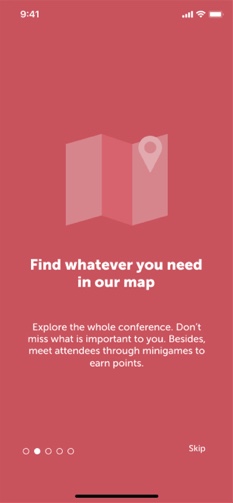 After providing a quick overview of the features available in the app, the user can sign-in using the conference badge. The onboarding is crucial because the app will explain everything the users needs to achieve the goal of connecting with people make them feel more comfortable by knowing what they have to do, how and what they will get.