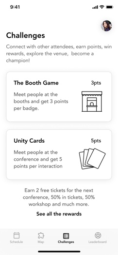 Users will see the available missions to play per day in the conference